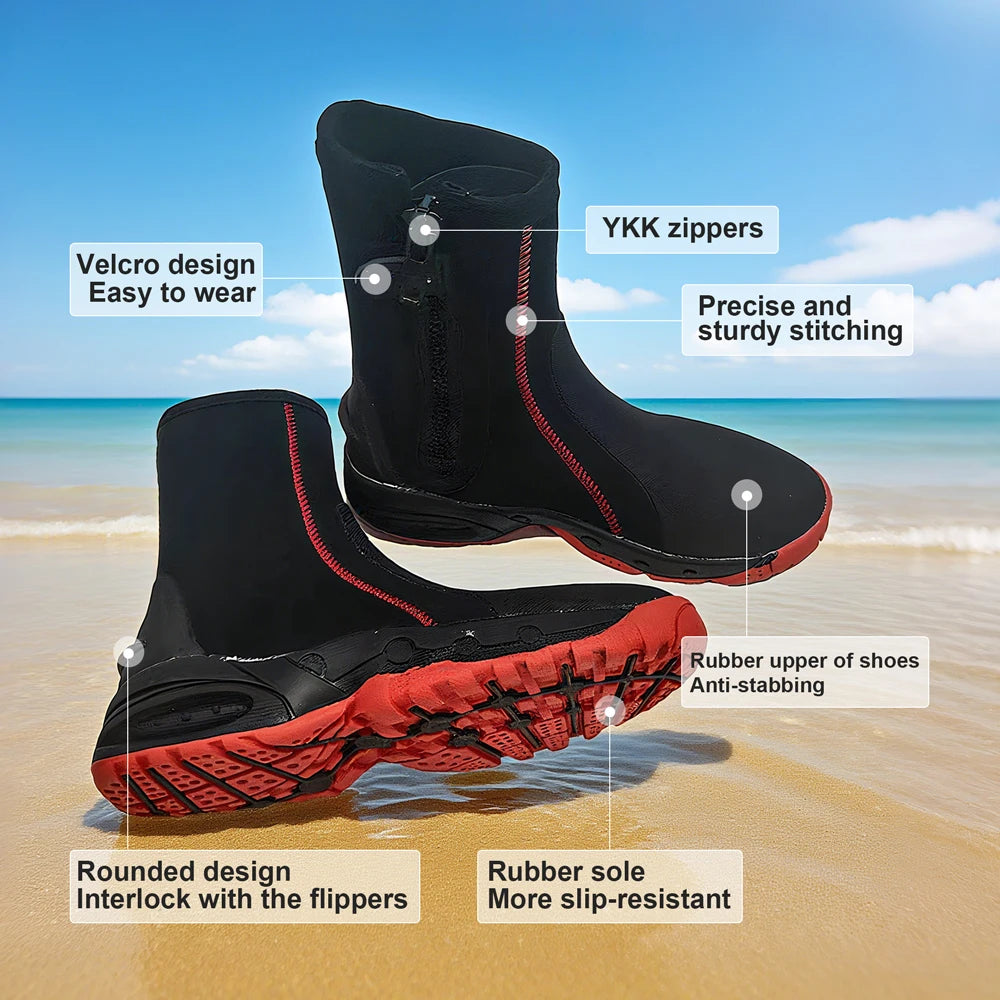 5mm Neoprene Durable Water Diving Boots with Chloroprene Rubber Shoelaces And Zippers for Warmth And Anti-Slip Short Boot