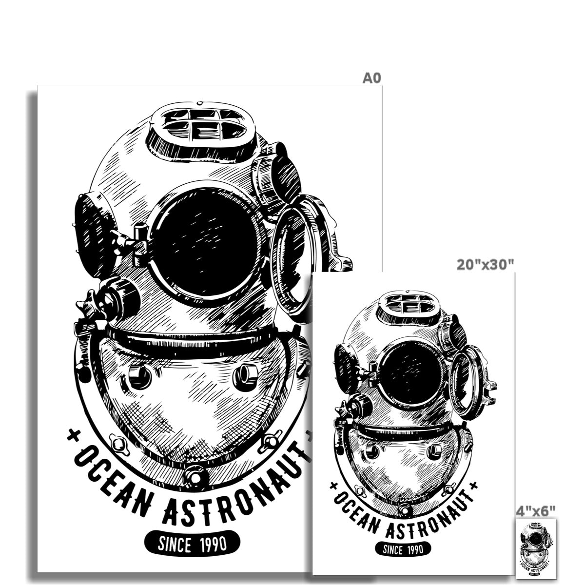 AQUA B&W - 05 - Ozean-Astronaut - Gerollte Eco-Leinwand