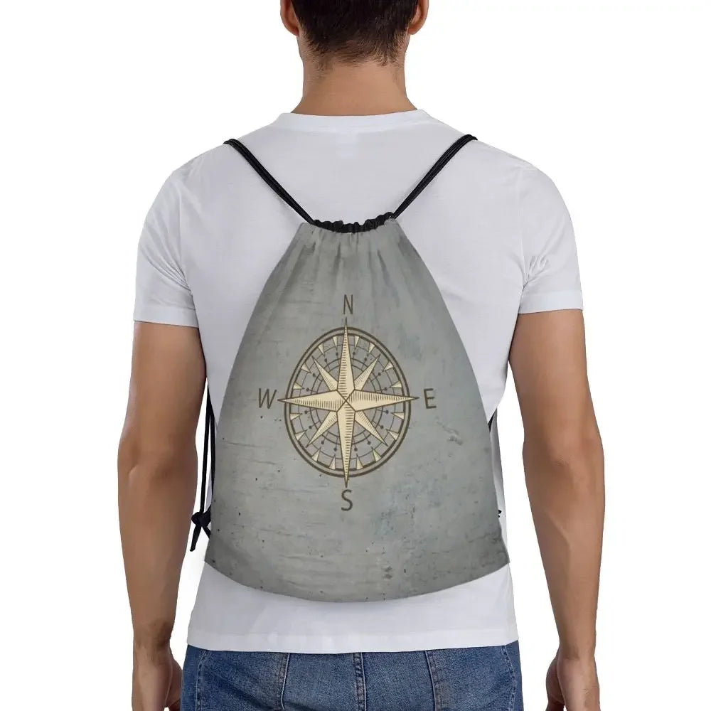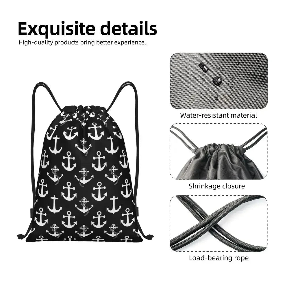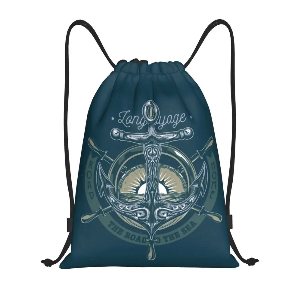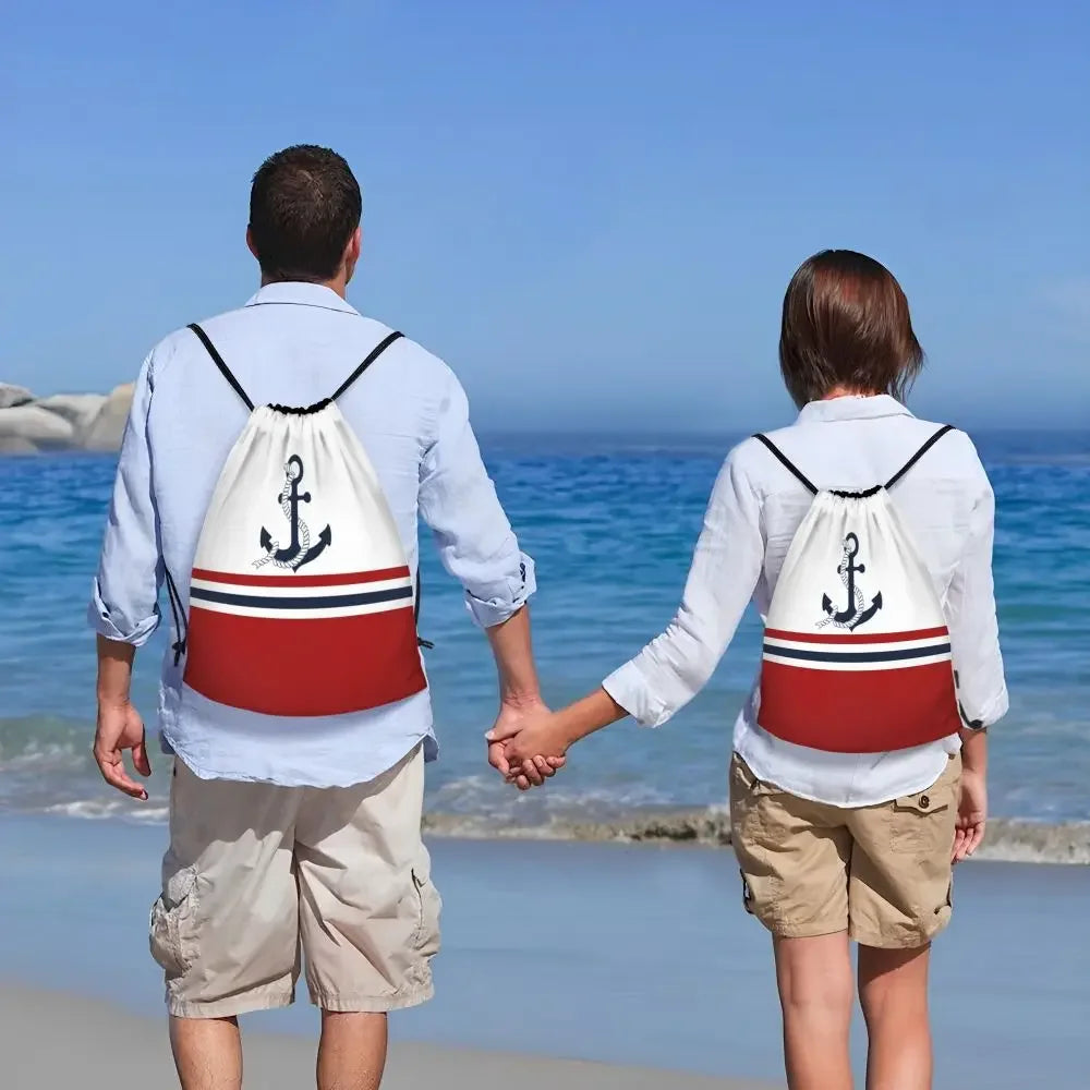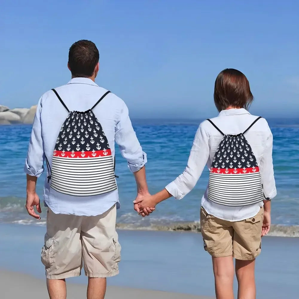 Custom Anchor And Navy Blue Stripes Drawstring Backpack Women Men Gym Sport Sackpack Portable Nautical Sailor Shopping Bag Sack