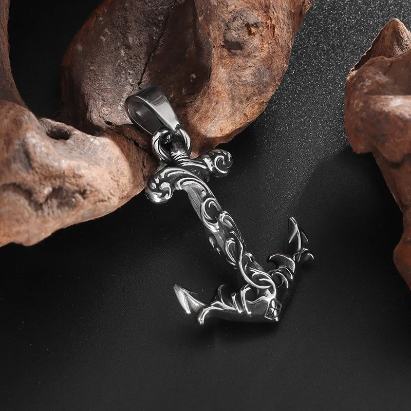 New Arrival Anchor Pattern Wave Necklace Retro Navy Nautical Pirate Pendant Stainless Steel Anchor Chain Men's Sports Jewelry