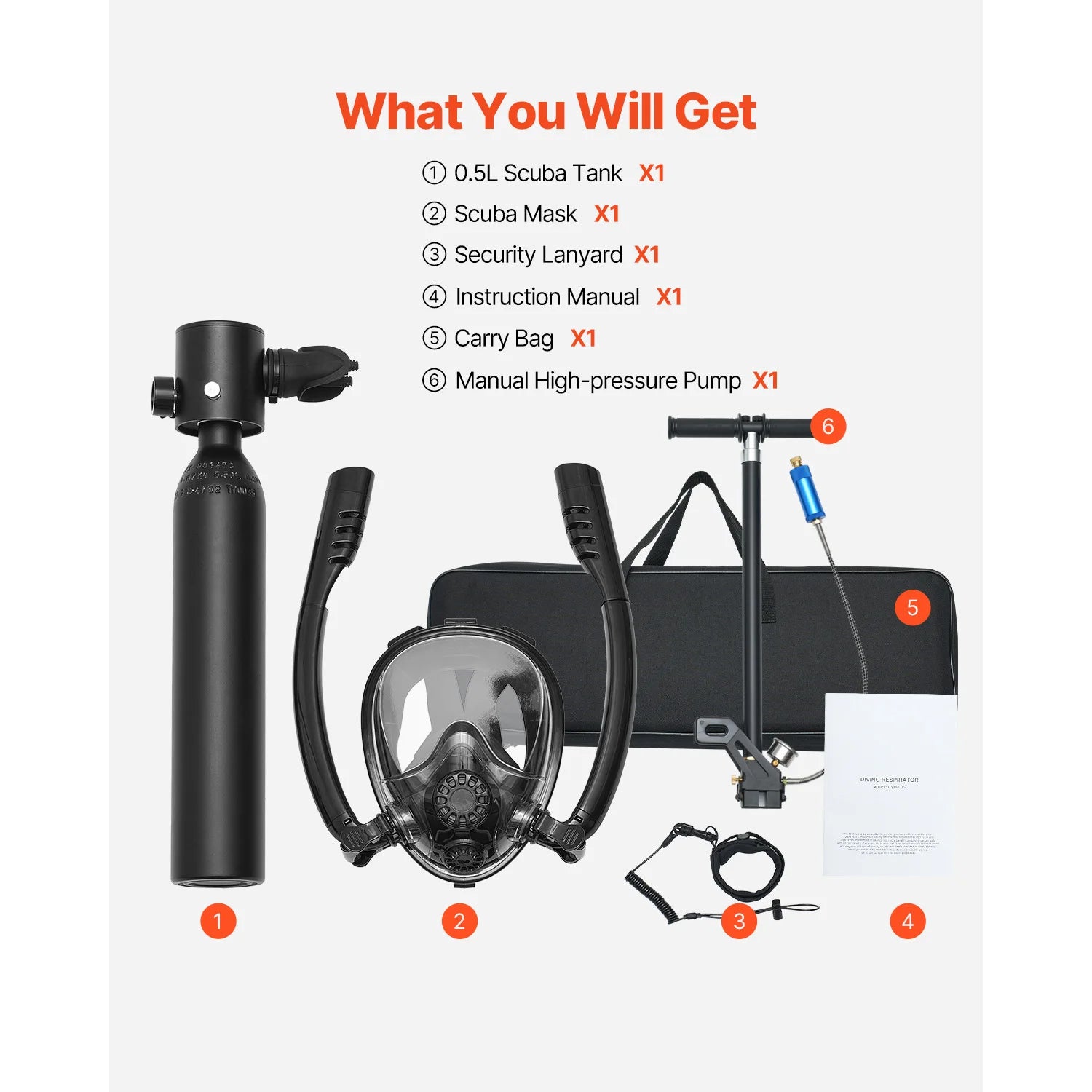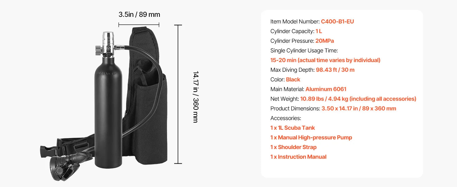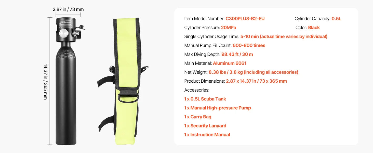 SucceBuy Scuba Tank 0.5 L Portable Diving Tank Diving Oxygen Cylinder Support 5-10 Minutes Underwater Breathing 98.43 ft Depth