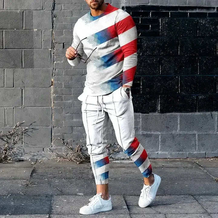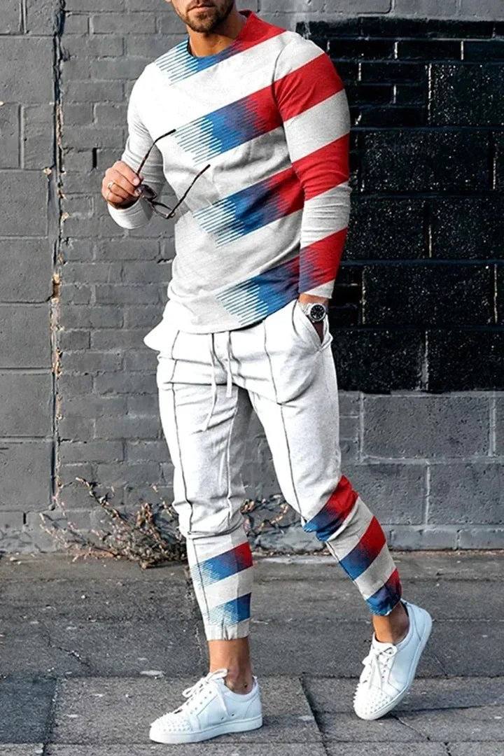 Men's Long Sleeve T-shirts and Pants Two Piece Black Classic Geometry 3D Printed Men's Sets Casual Suit nike tech fleece