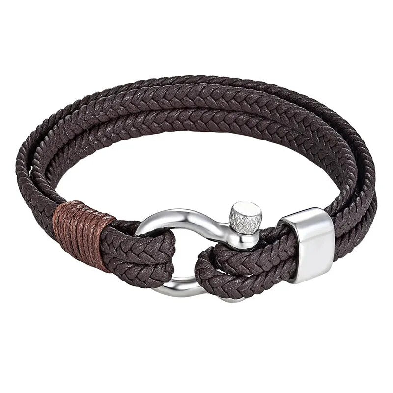 High Quality Stainless Steel Shackle Buckle Leather Survival Bracelets Bangle Men Surf Nautical Sailor Surfer Wristband Jewelry