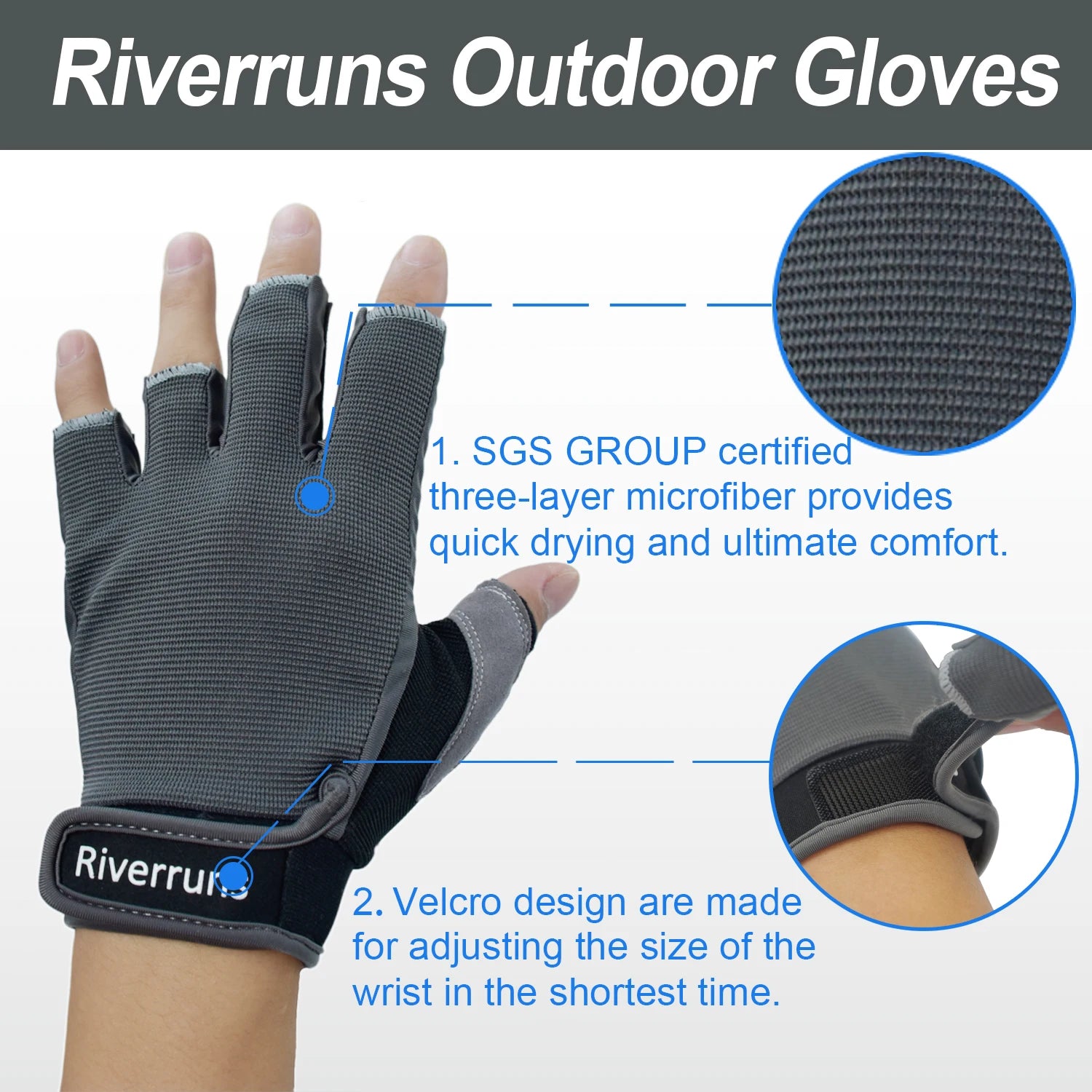 Riverruns Fingerless Fishing Gloves Sun Protection for Men Fishing, Paddling, Sailing, Rowing and Hiking.