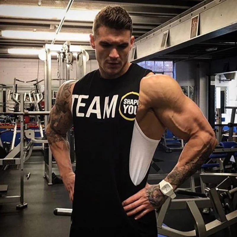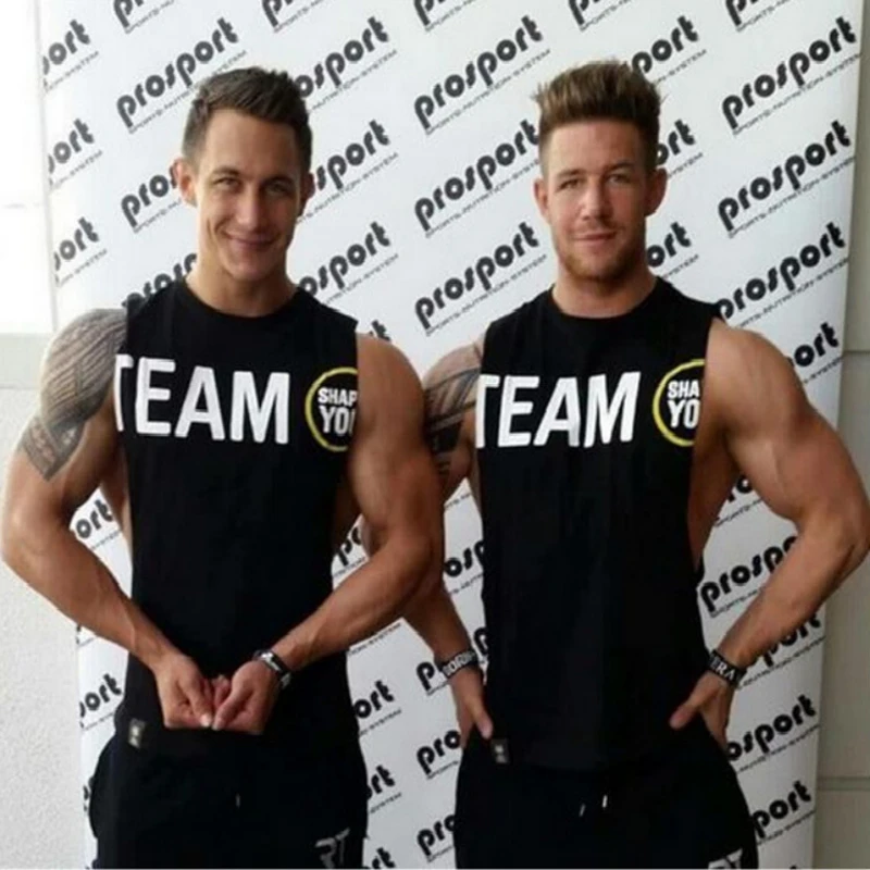 Men Gym Fitness Bodybuilding Cotton Tank Tops Stringer Singlet Vest Clothes Sleeveless Shirts Male Summer Training Undershirt