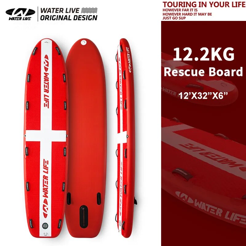 WATERLIVE RESCUE Paddle Board 12'x32"x6" Red Water Rescue SUP Surfboard 12.2kg Professional Survival Inflation Surfboard
