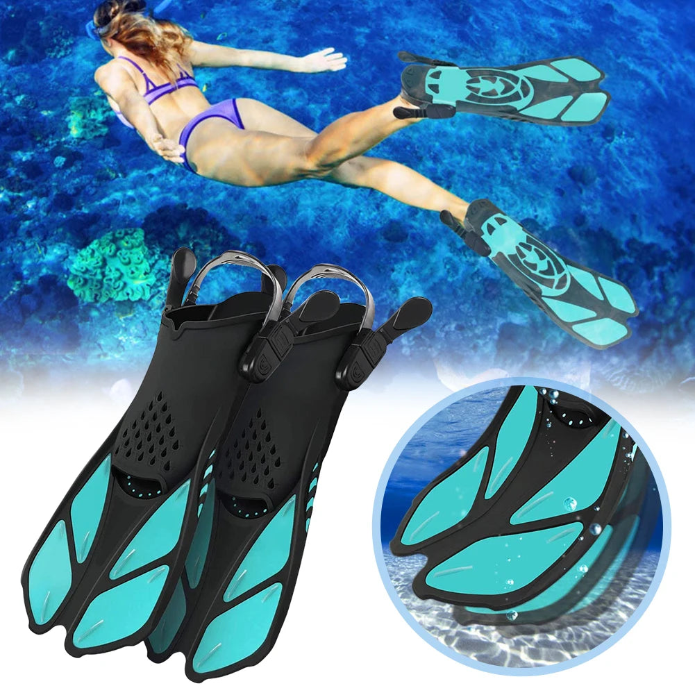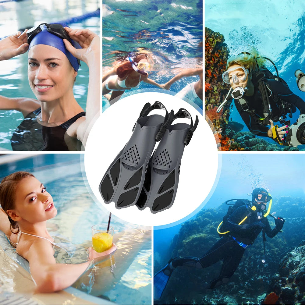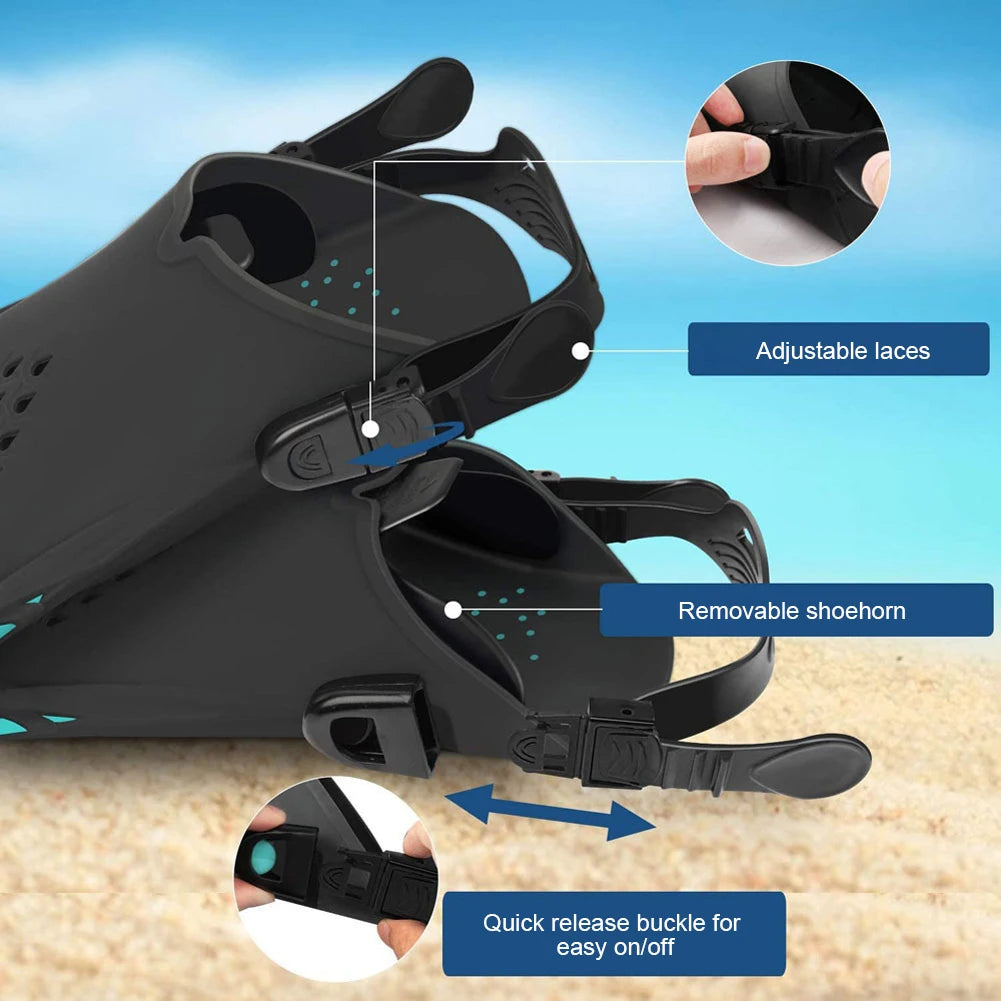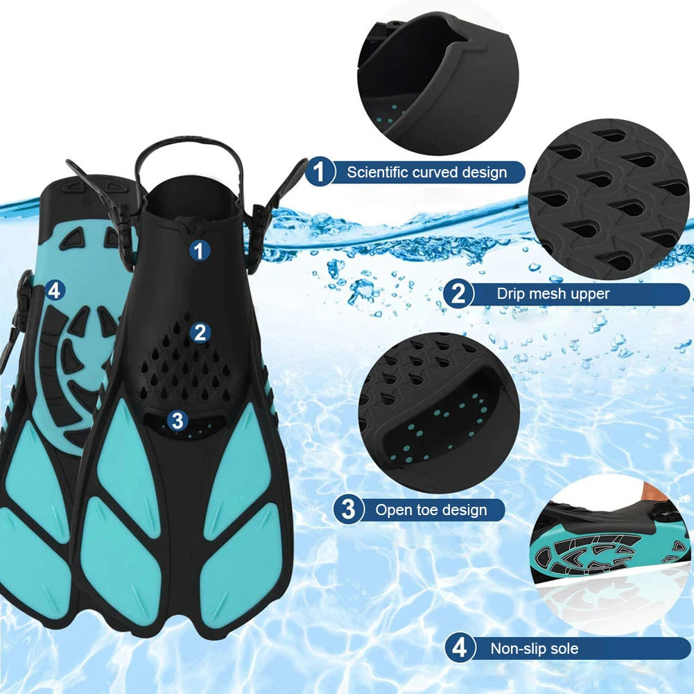 Snorkel Fins Adjustable Buckles Scuba Shoes Swimming Flippers Short Scuba Diving Shoes Open Heel Size for Men Women Snorkeling