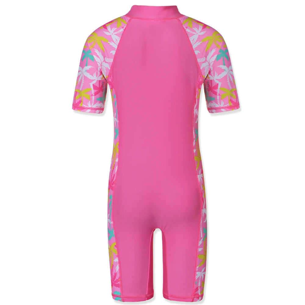 BAOHULU 1-11 Yrs Kids Swimwear Girls Short Sleeve Swimsuit One Piece UPF50+ Rash Guard Baby Girl Swimwear Children Surf Suit