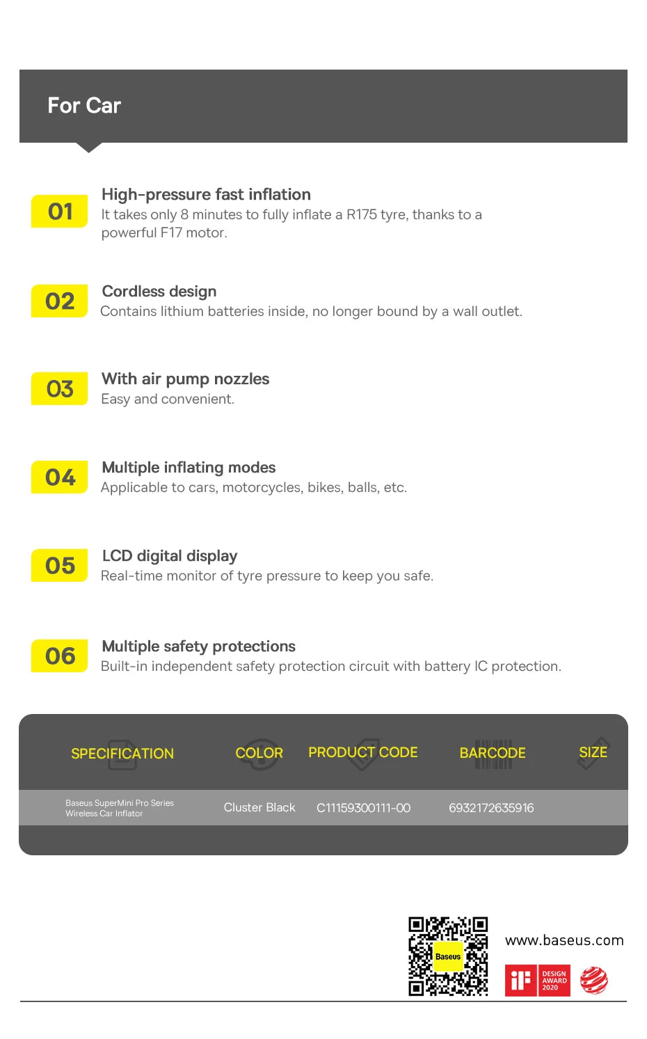 Name: Baseus SuperMini Pro Series Wireless Car Inflator