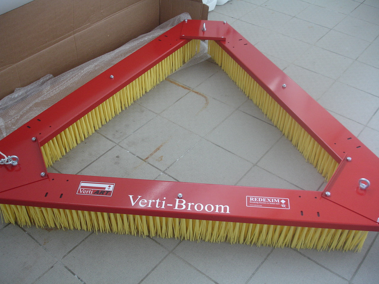 Equipamento da marca Vertibroom, para escovagem de relvados sintéticos.