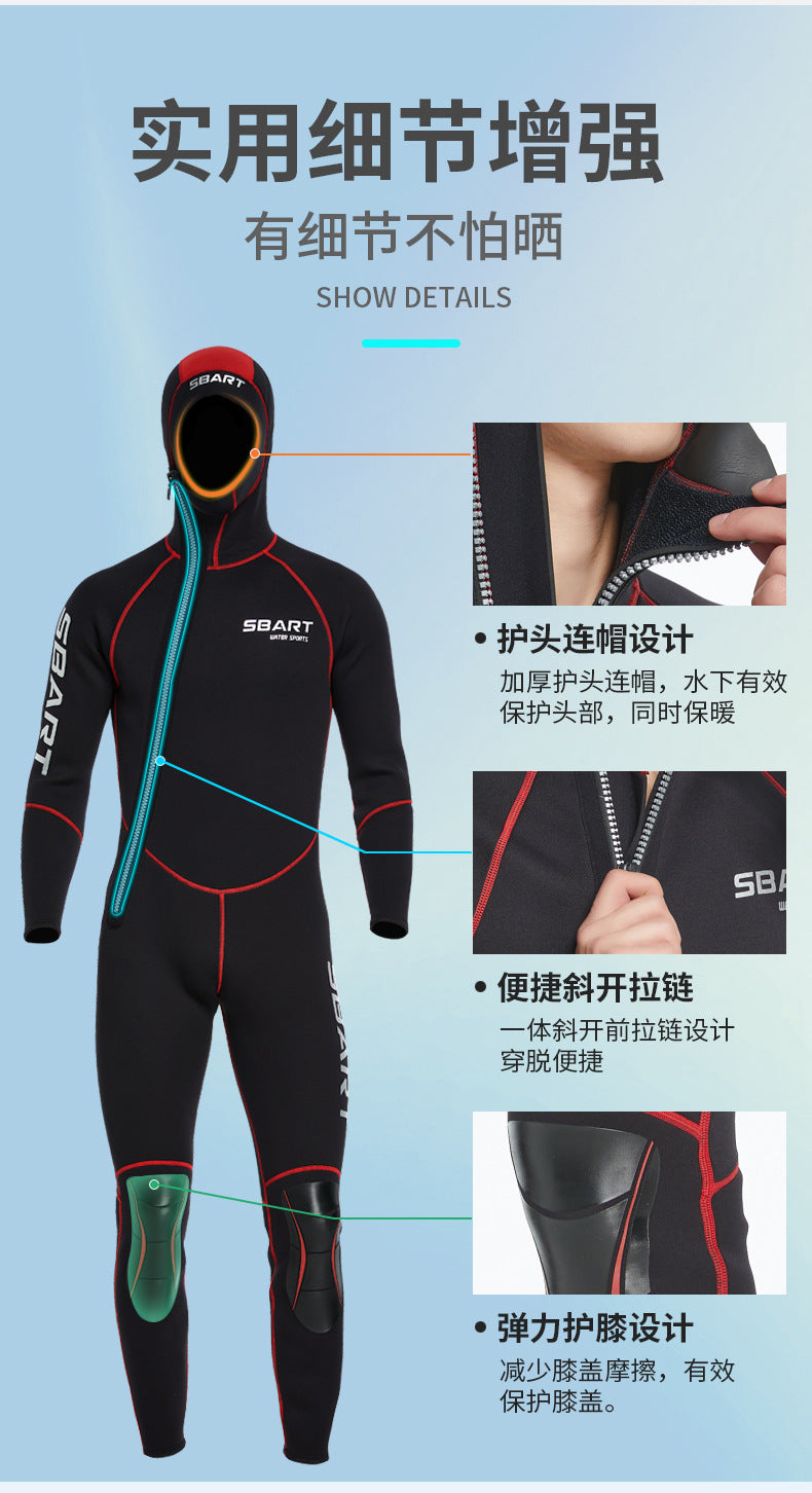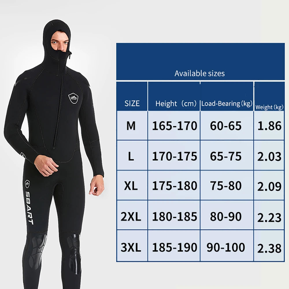 3MM Neoprene Wetsuit Hooded Men Surf Scuba Diving Suit Underwater Fishing Spearfishing Kitesurf Clothing WetSuit Equipment