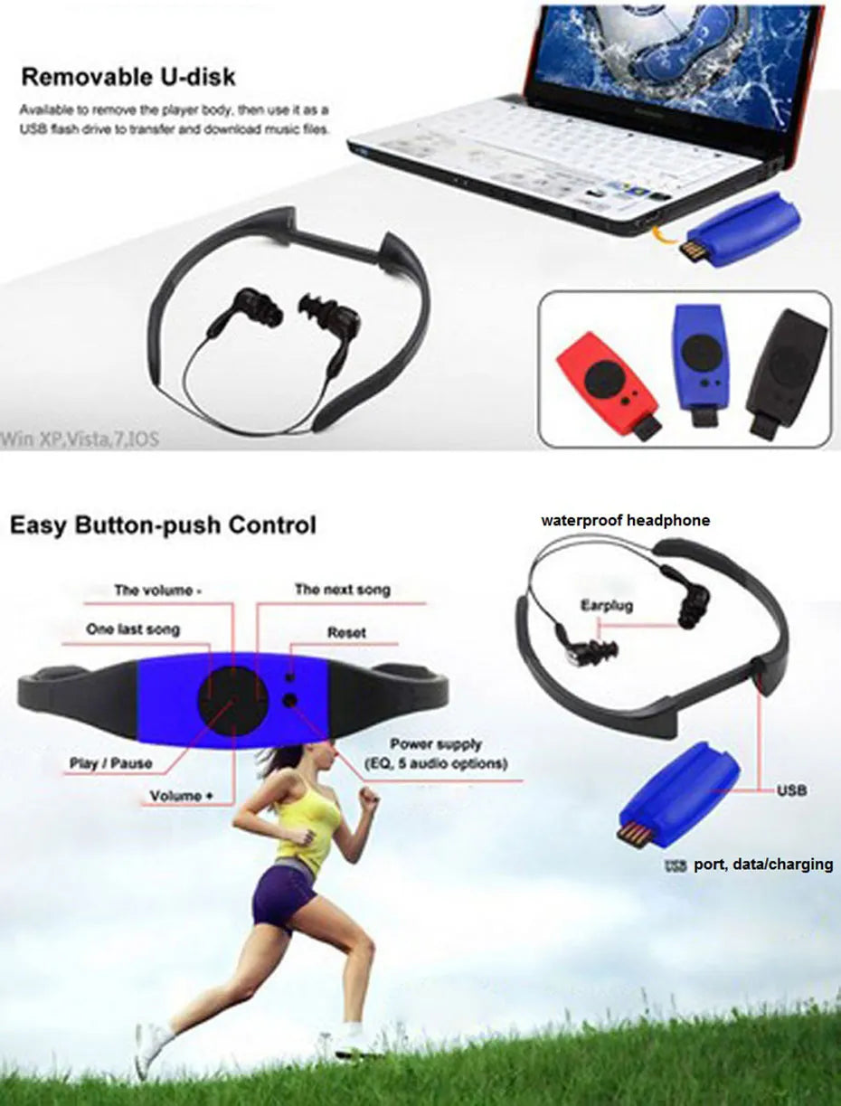 003 4GB/8GB Waterproof IPX8 Diving Swimming Surfing MP3 Player Headset Music Player