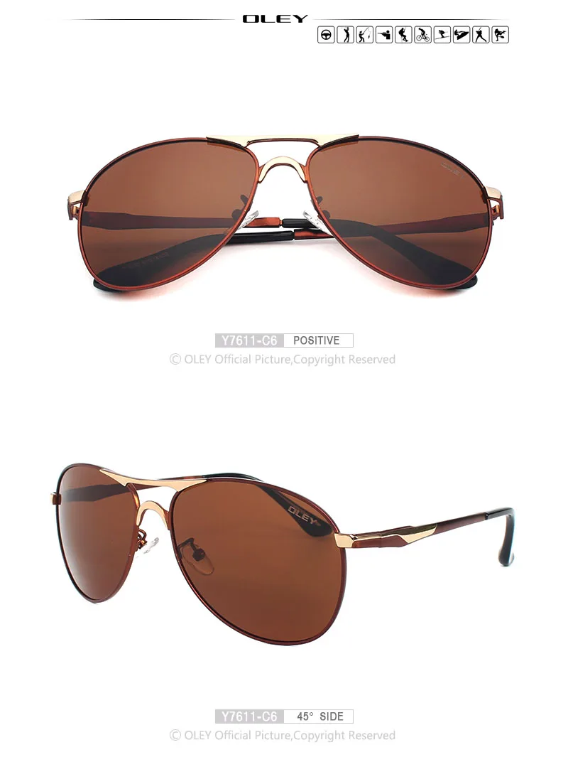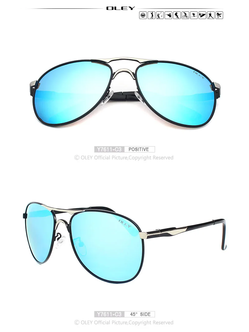 OLEY Luxury brand mens driving Sunglasses polarized women pilot Sun glasses blue coating eyewear dos homens Y7611