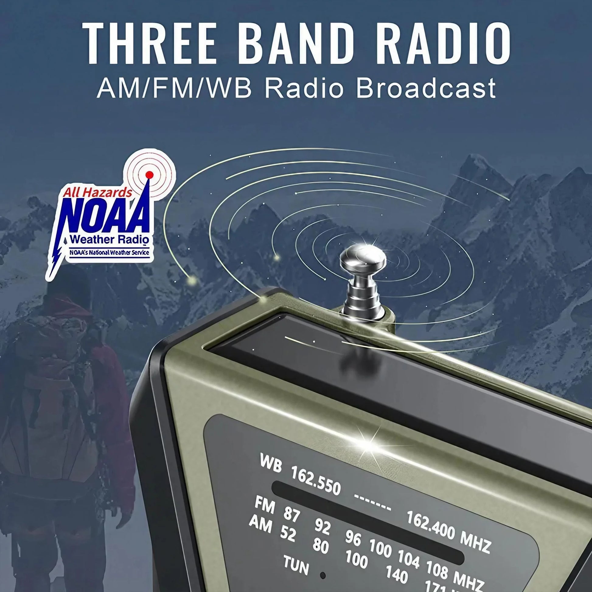 Weather Radio Emergency Multifunctional Radio FM AM WB Hand Crank Solar USB Charging 2000mAh Power Bank LED Flashlight Torch