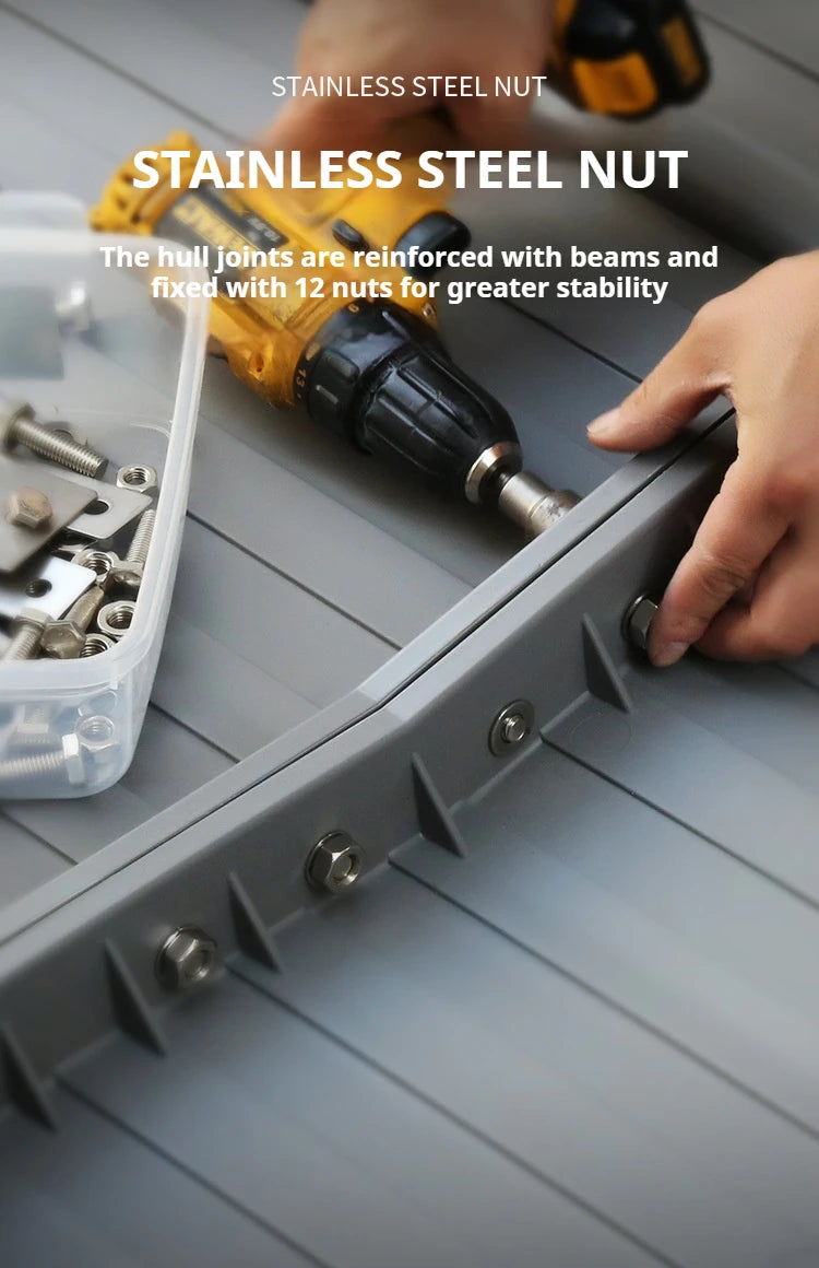 Modular PPR Folding Boat w/Silicone Seals & Air Bow Outboard-Ready Fishing Skiff w/Stainless Hardware Leak-Proof Assembly Craft