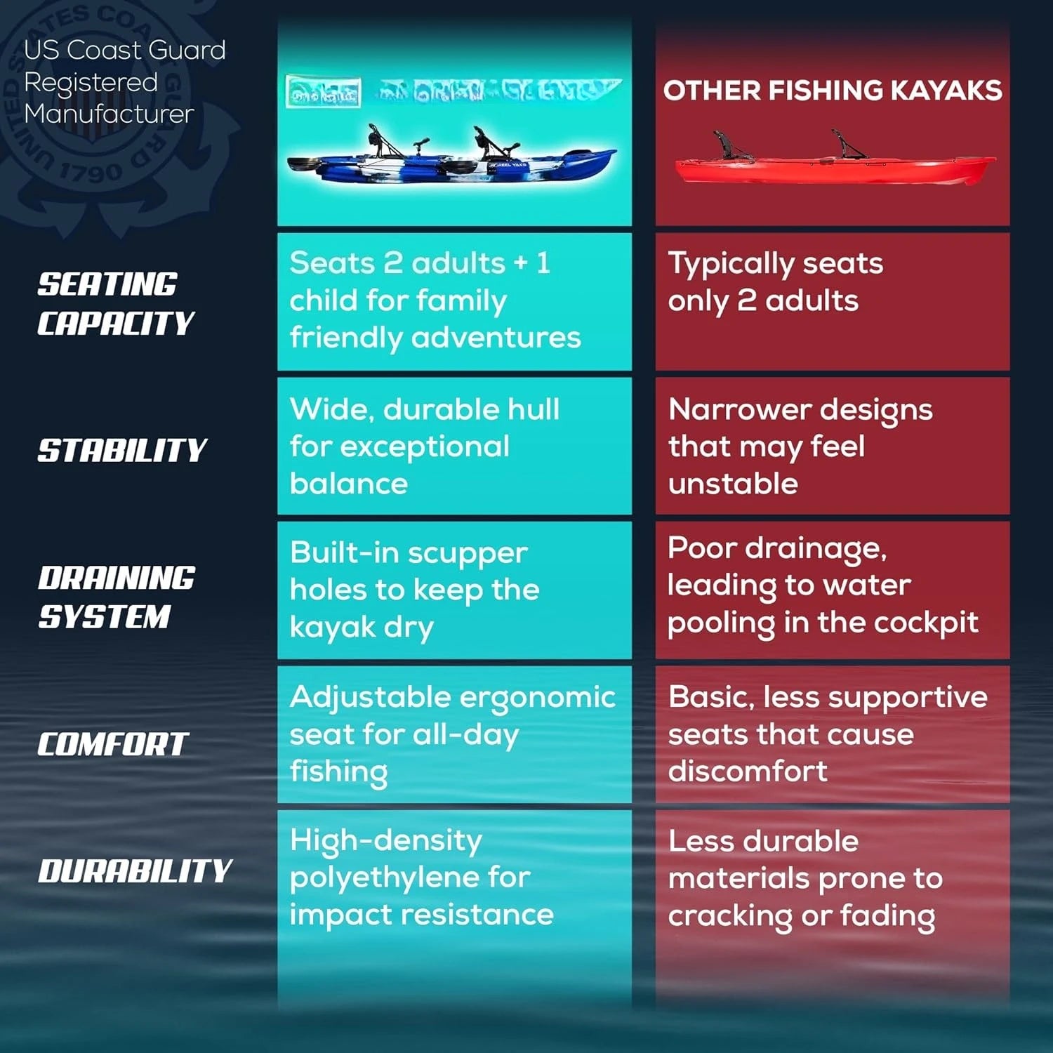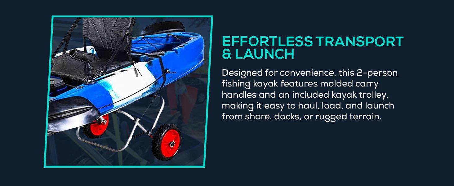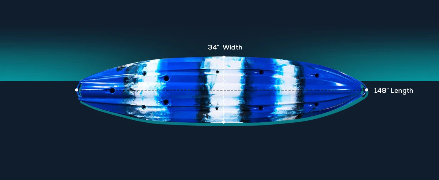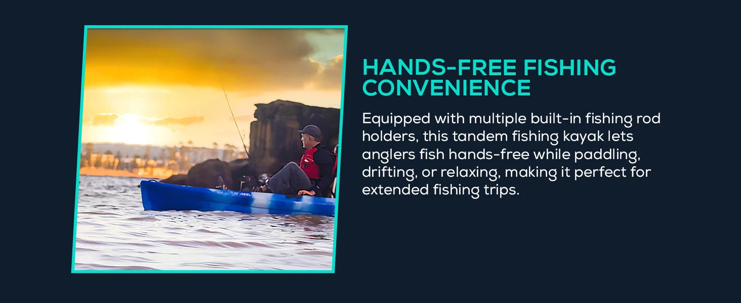Reel Yaks Tandem Fishing Angler Kayak 12.5ft Sit On Top Boat for 2 3 Persons 550 lbs Capacity Stable W Hull Family Adventure