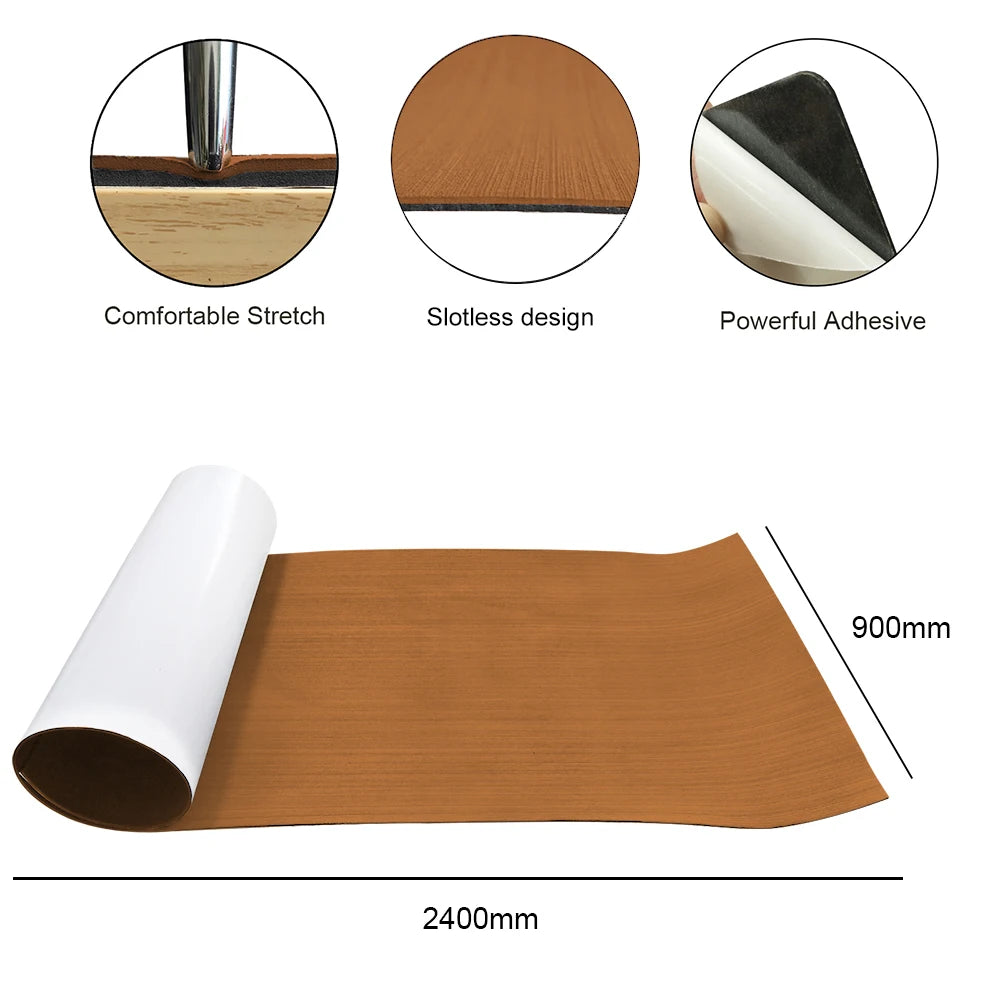 2400x900x5mm EVA Foam Faux Teak Boat Decking Mat Grey Plush Surface Self-adhesive Yacht Flooring Anti-Skid Mat Kayak Accessories