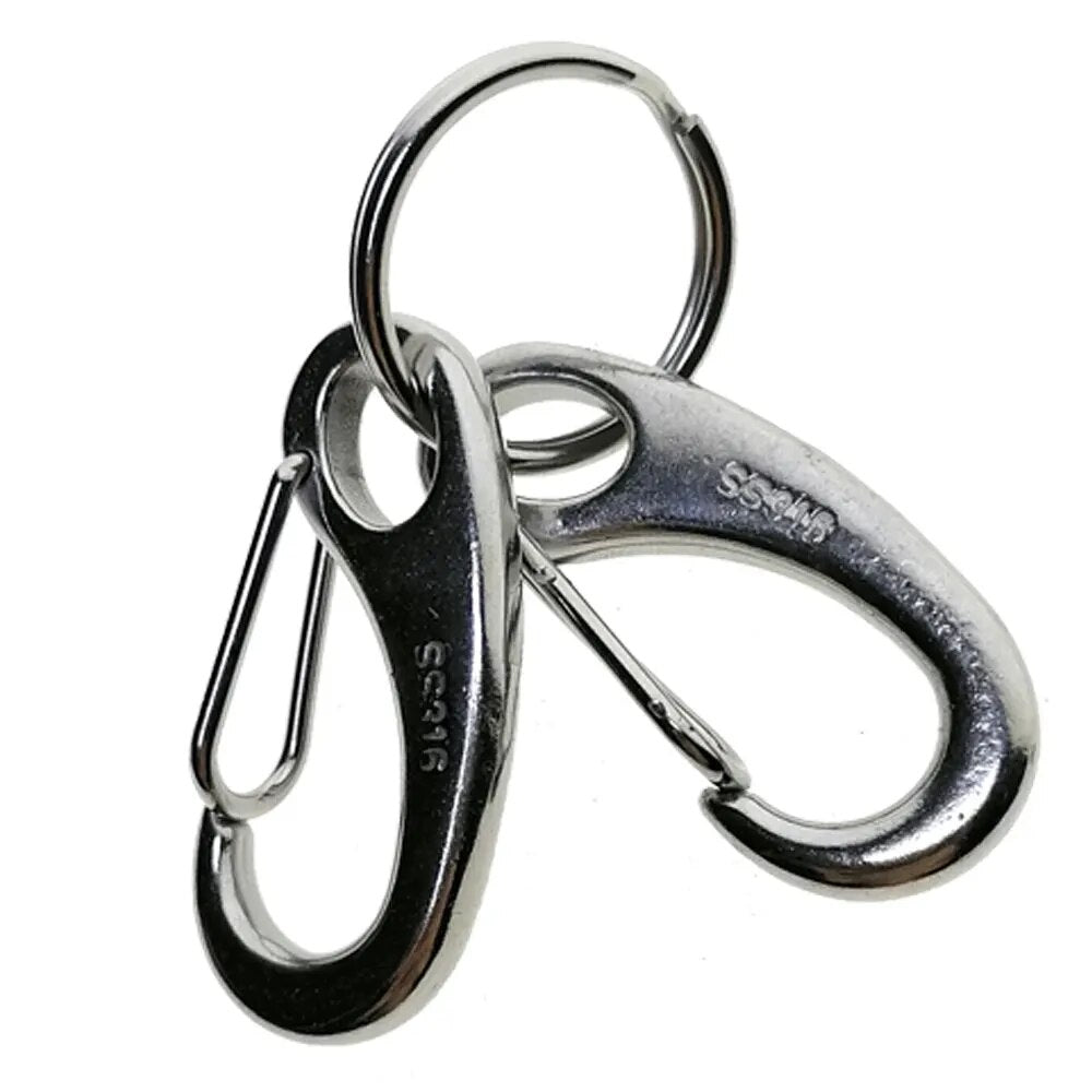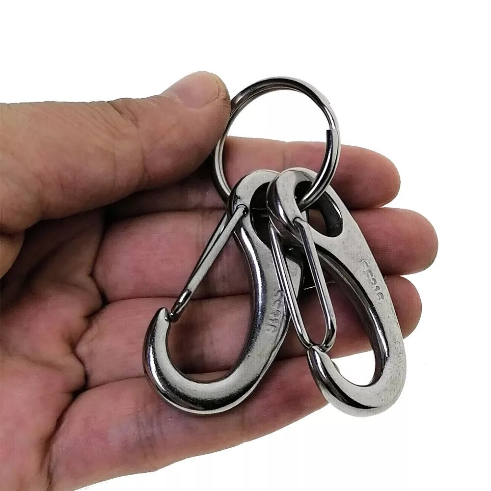 2 Pcs 316 Stainless Steel Snorkeling Swimming Diving Quick Release Keychain Carabiner Snap Hook Quickdraw Clip with Key Chain