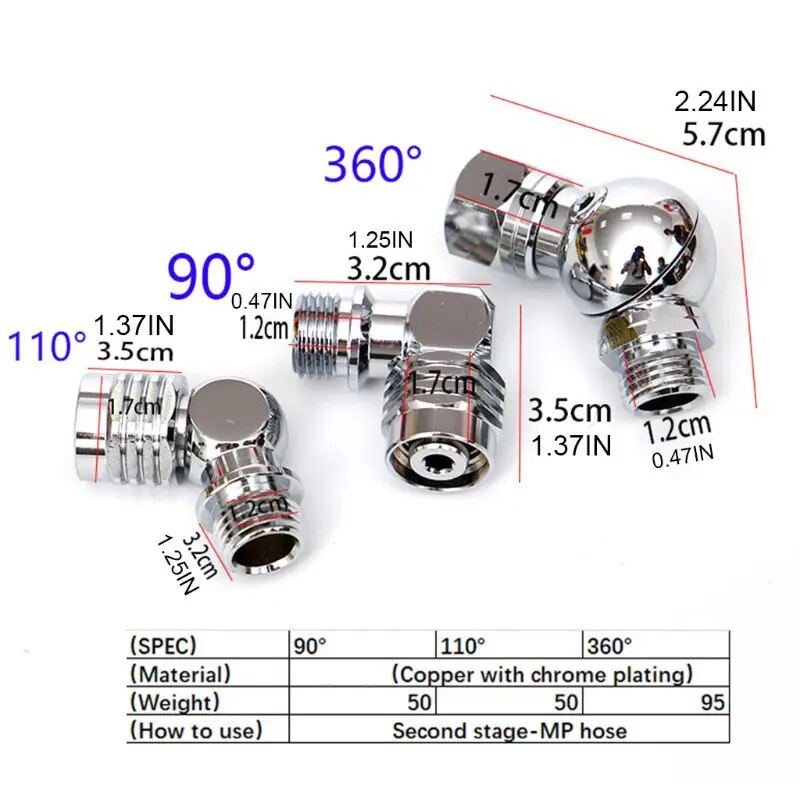 90/110/360 Degree Swivel Hose Adapter 2nd Stage Scuba Diving Regulator Connector R9CE