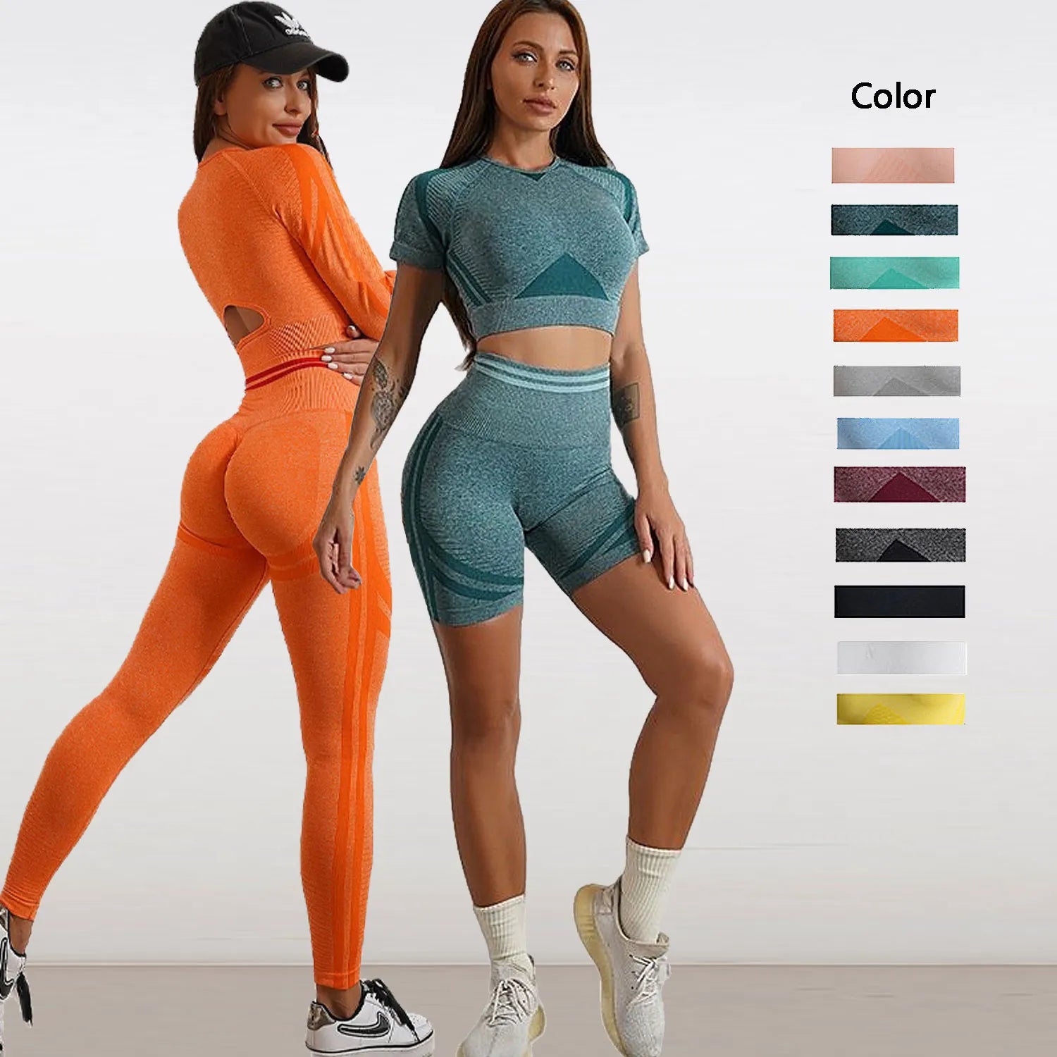 Conjunto esportivo feminino, 2 peças, fitness, yoga, cintura alta, sem costura, leggings, shorts esportivos, top crop, conjuntos de academia, roupas femininas, agasalho