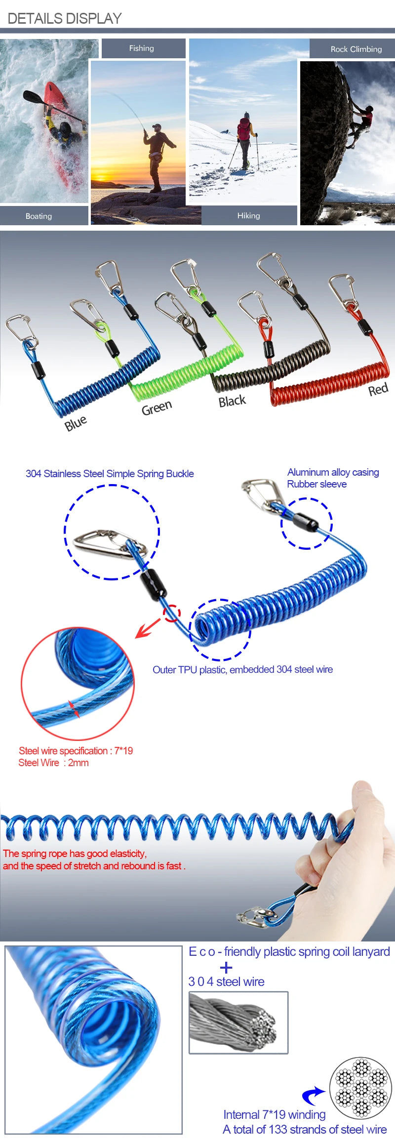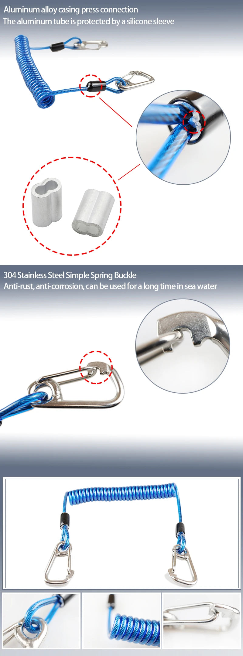 TSMCYD Scuba Diving lanyard 316 Anti-lost Spiral Spring Coil Lanyard Safety Emergency Tool with One Quick-release Buckle