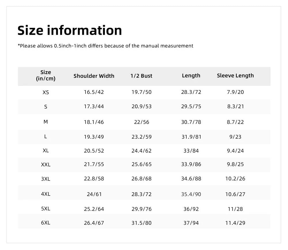 Size: S,M,L,XL,XXL,3XL,4XL,5XL,6XL