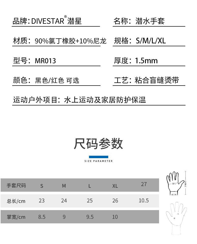 Package including:(1Pairs Diving Gloves)