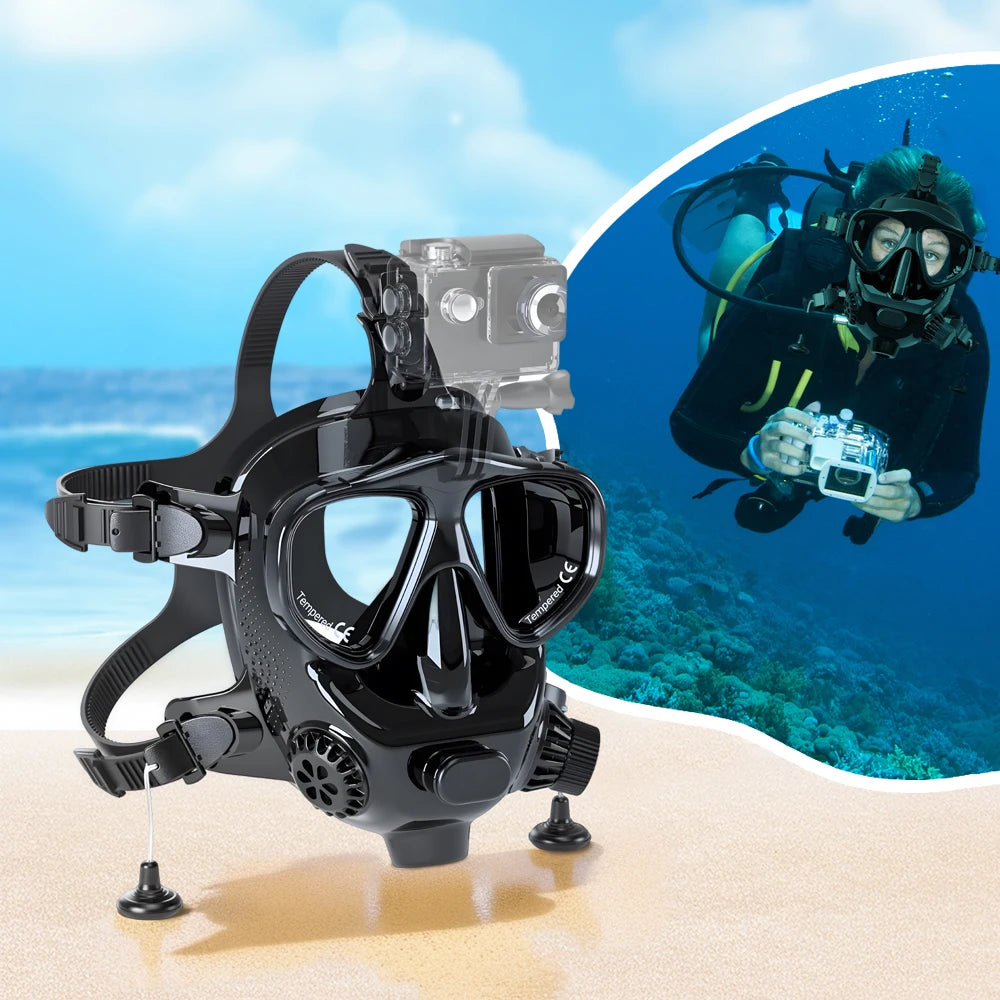 SMACO Full Face Diving Mask with Camera Mount, Full Face Snorkel Mask for Adults Compatible with Above 1L Scuba Diving Tank,