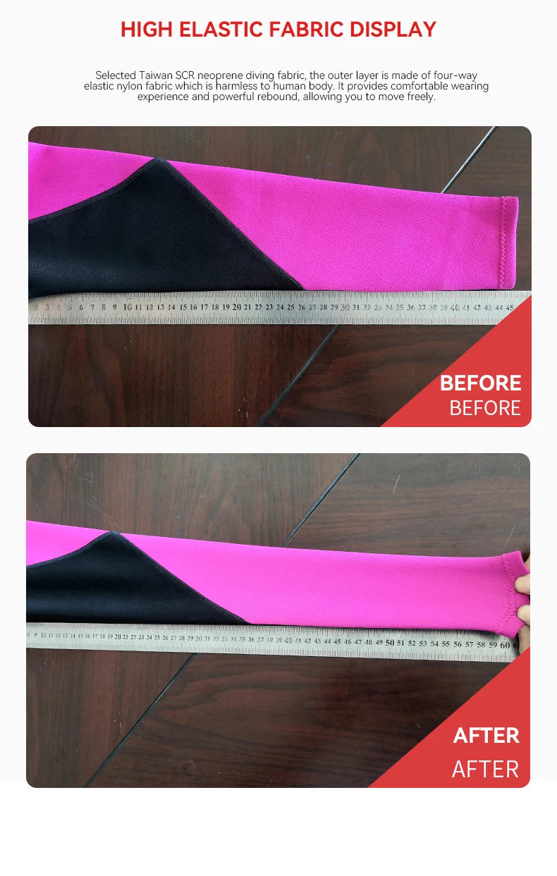 Selected Taiwan SCR neoprene diving fabric, the outer layer is made of four-way elastic nylon fabric, which is harmless to human body. It provides comfortable wearing experience and powerful rebound, allowing you to move freely.