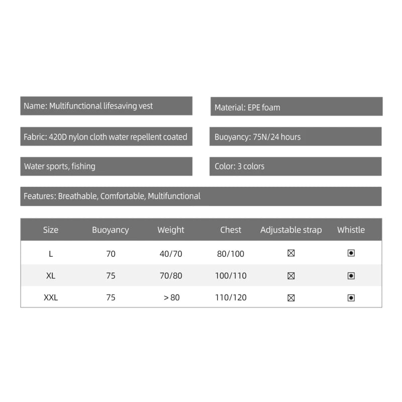 Safe Swim Life Jacket, Kayak Vest, Big Buoyancy Aids, Water Sport Survival Float for Adult, 120kg, New, Summer