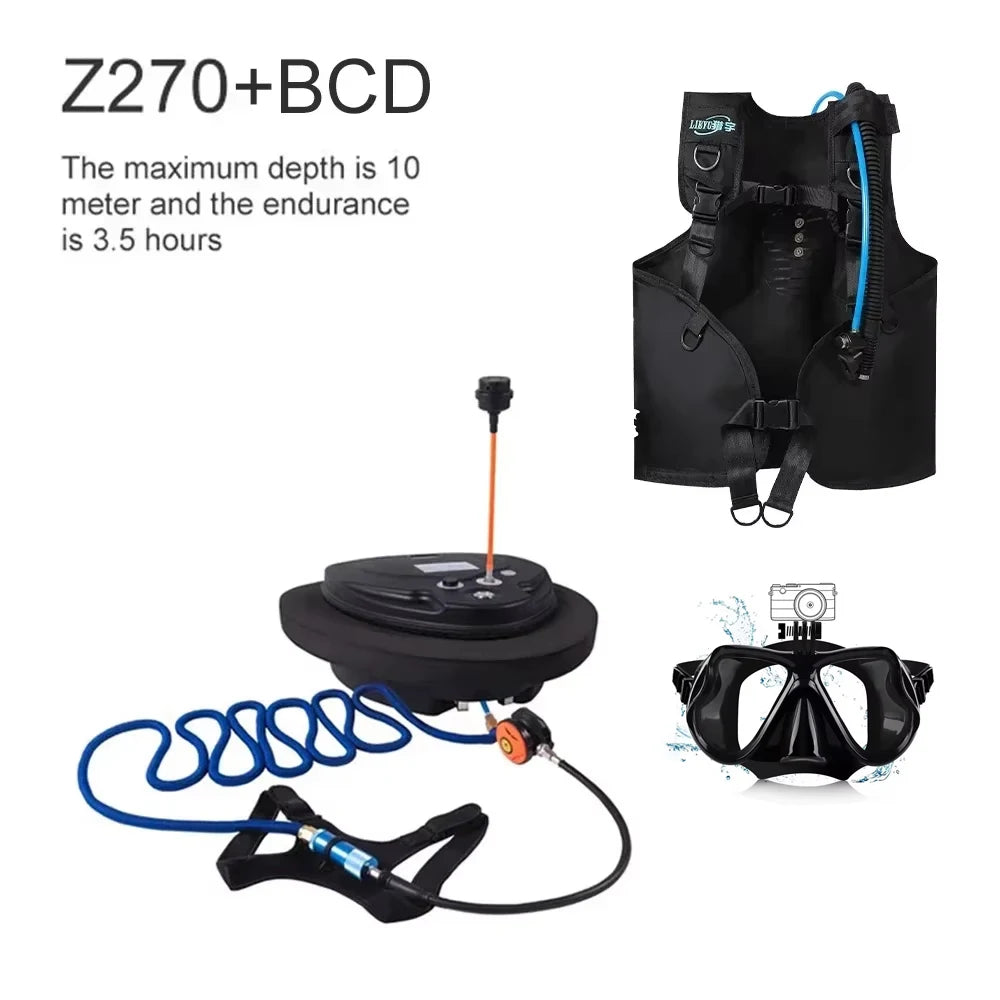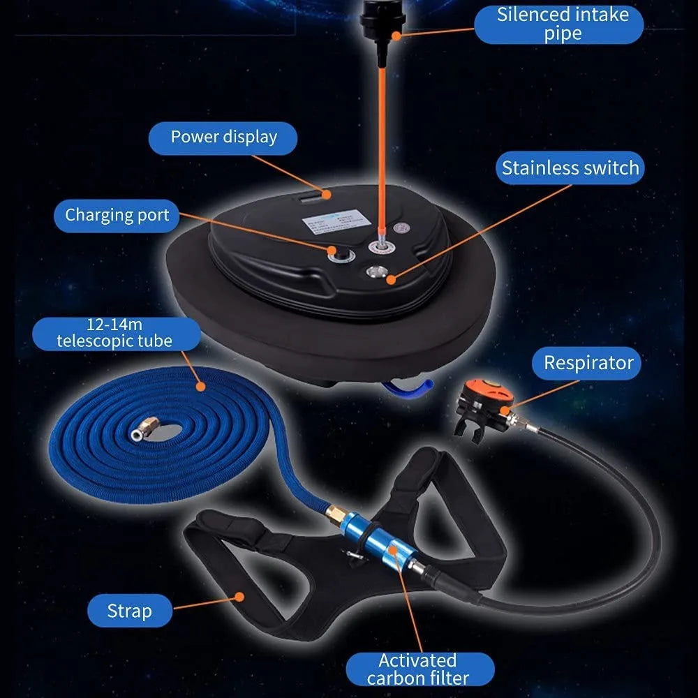 Scuba Diving Snorkel Equipment Mobile Ventilator Tankless Waterproof Portable Rechargeable To 12 Meters 3-5 Hours Underwater
