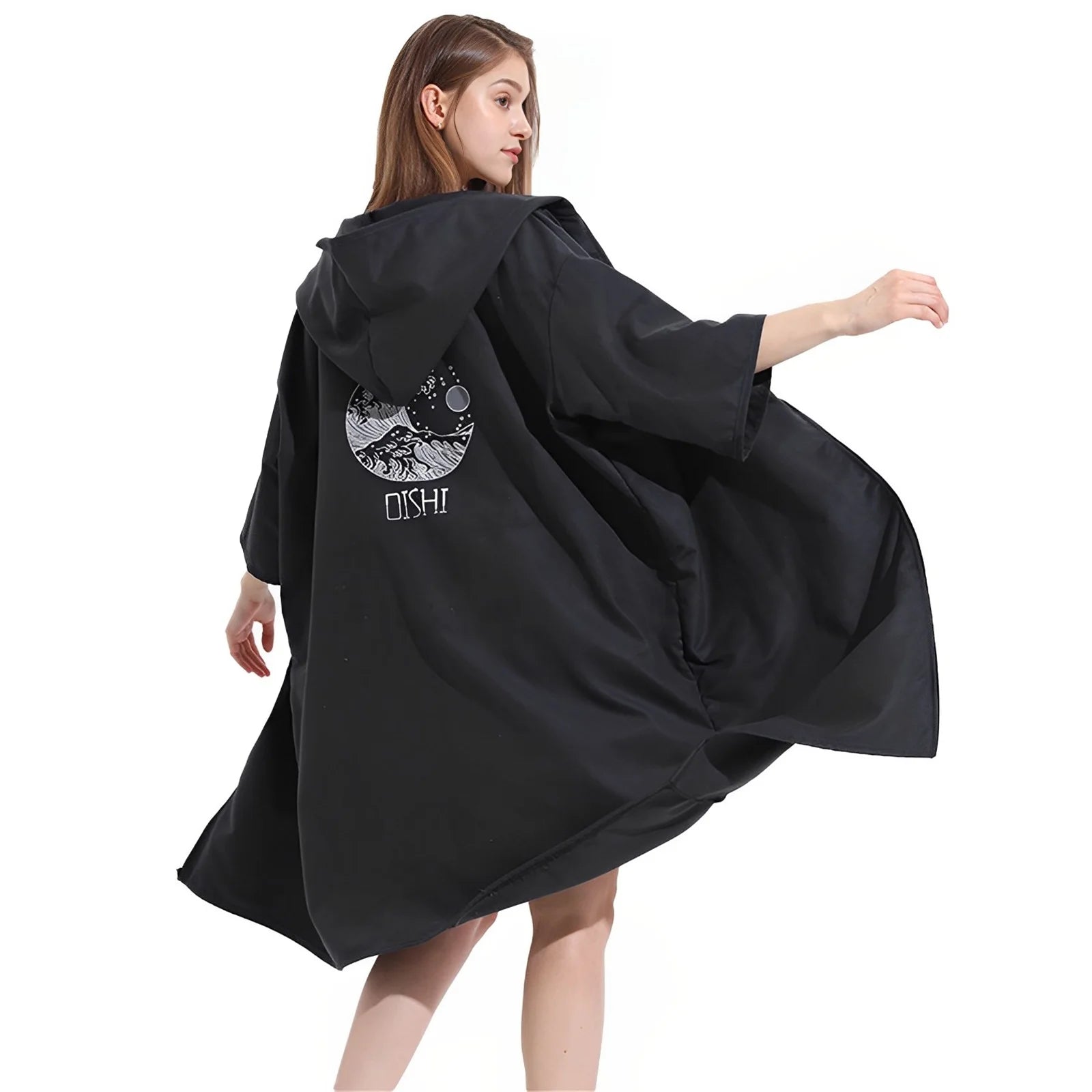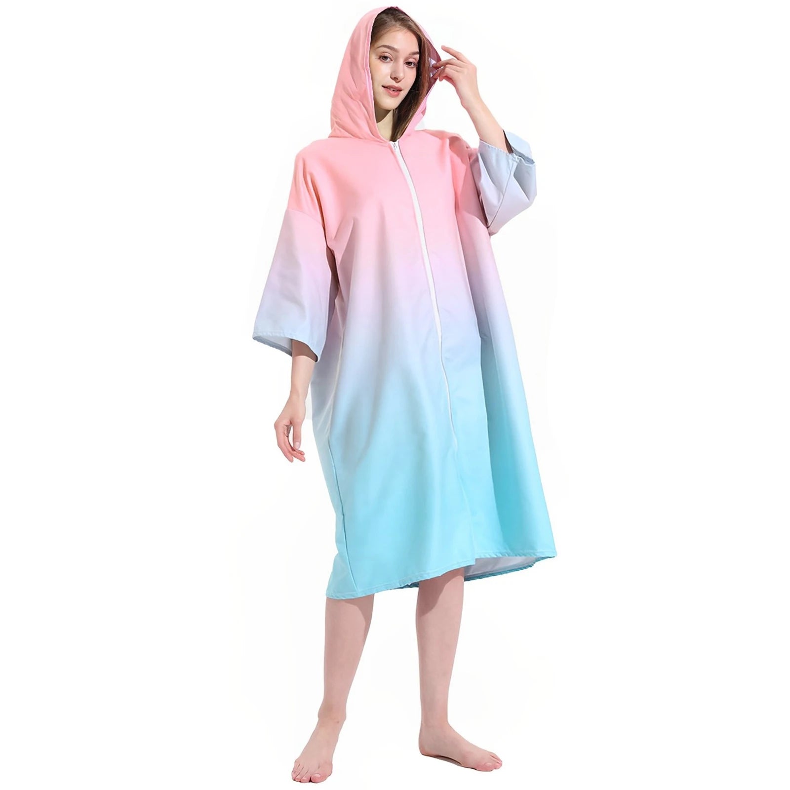 Roupão para troca com capuz, toalha de microfibra, poncho com zíper, manga curta, poncho de surf, grande tamanho, toalha para troca rápida
