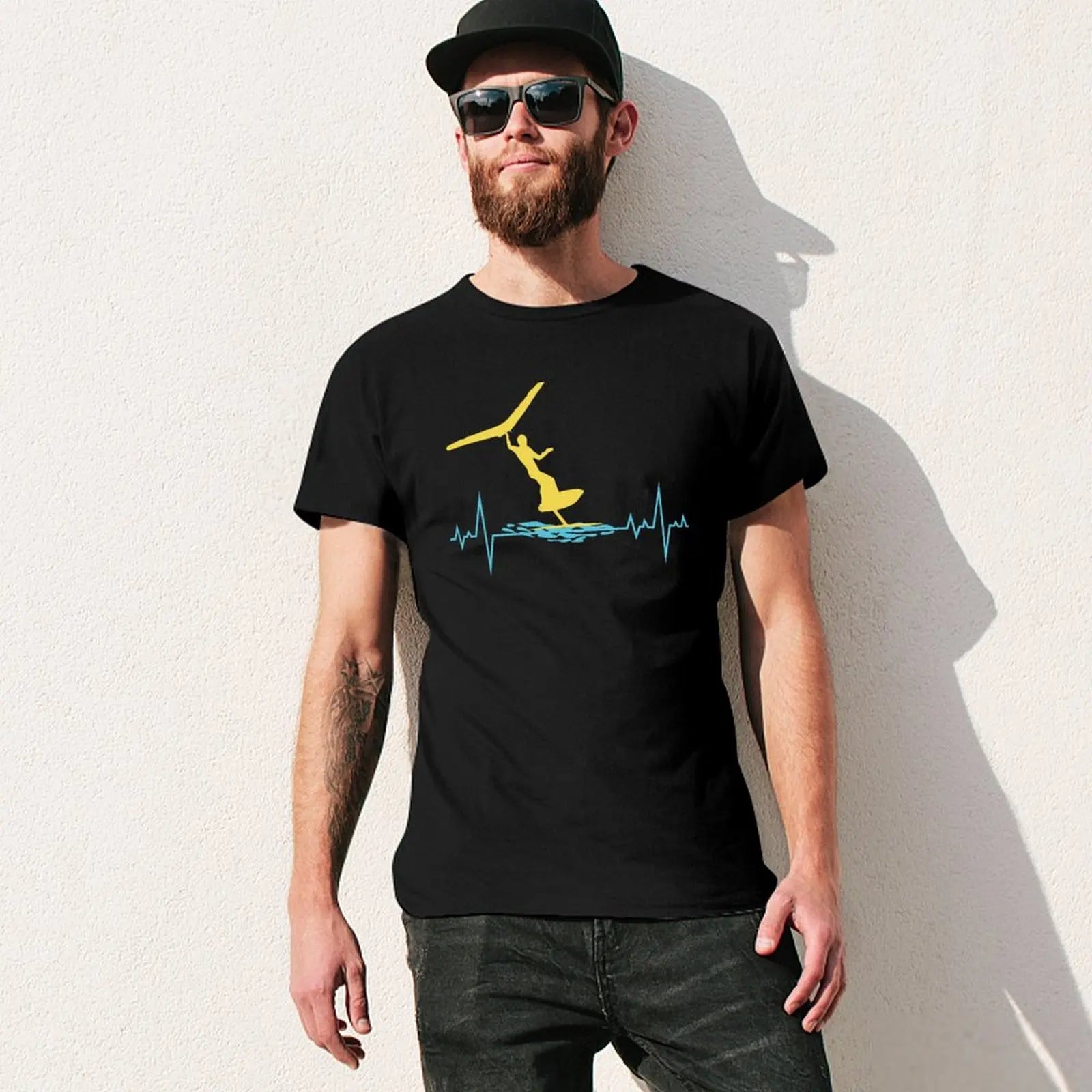Wing Foiling Surfing Heartbeat Funny T-Shirt cute tops new edition mens t shirts