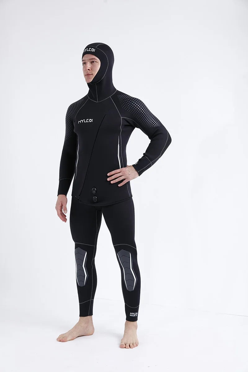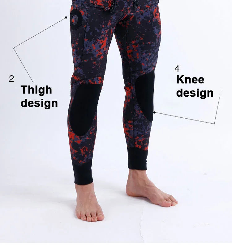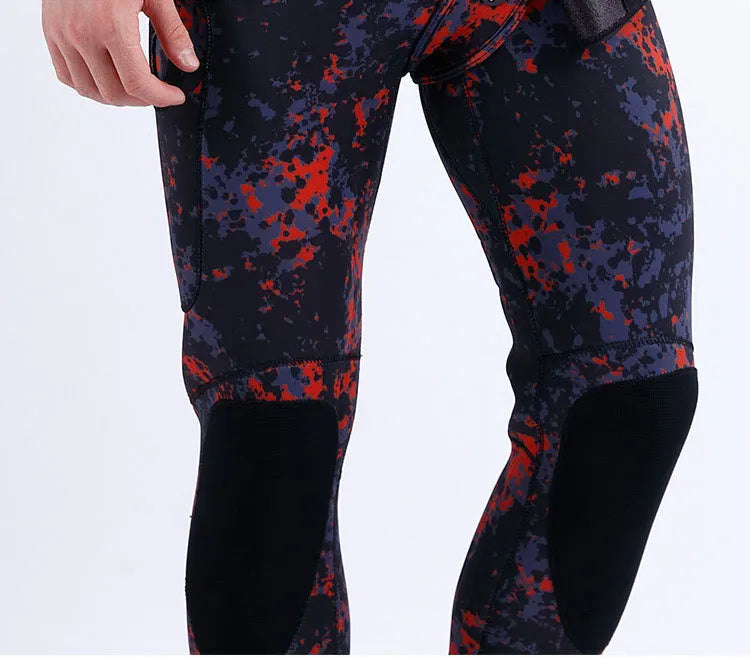 2 Pieces Of Neoprene Submersible 5MM Camouflage Wetsuit Long Sleeve Fission Hooded For Men Keep Warm Waterproof Diving Suit