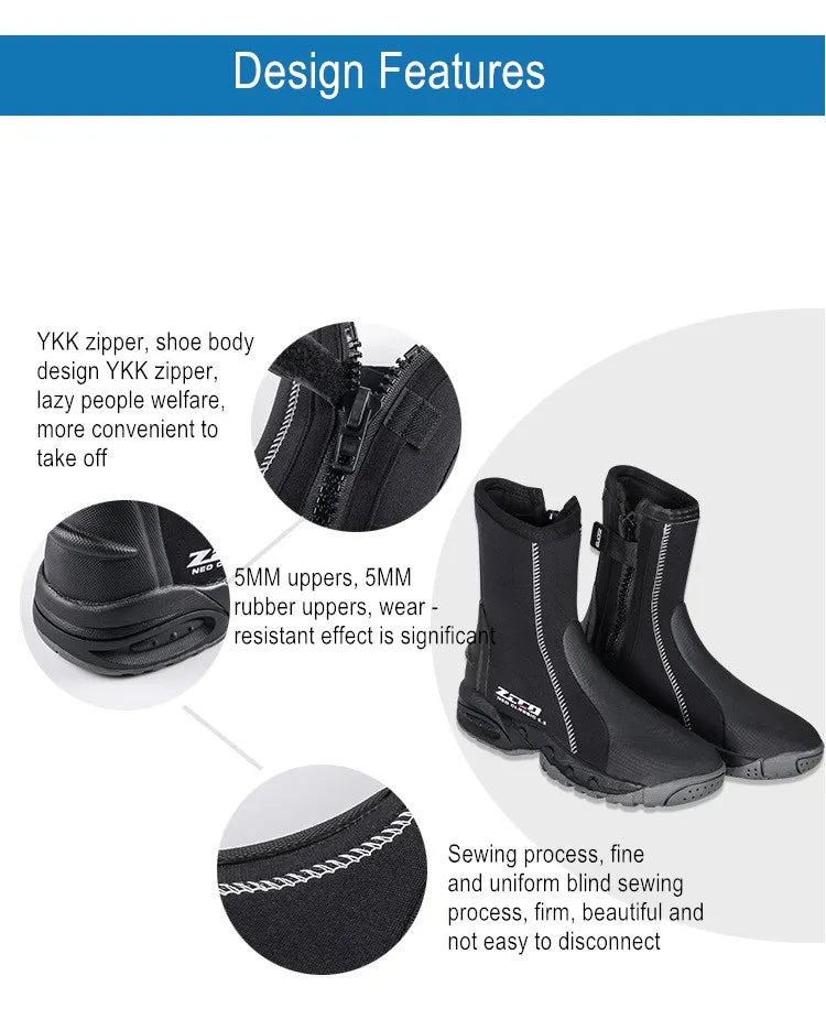 5MM Neoprene Water Sports UnderWater Hunting Spearfishing Swim Diving Boots With Side Zipper Scuba Kayaking Snorkeling Shoes