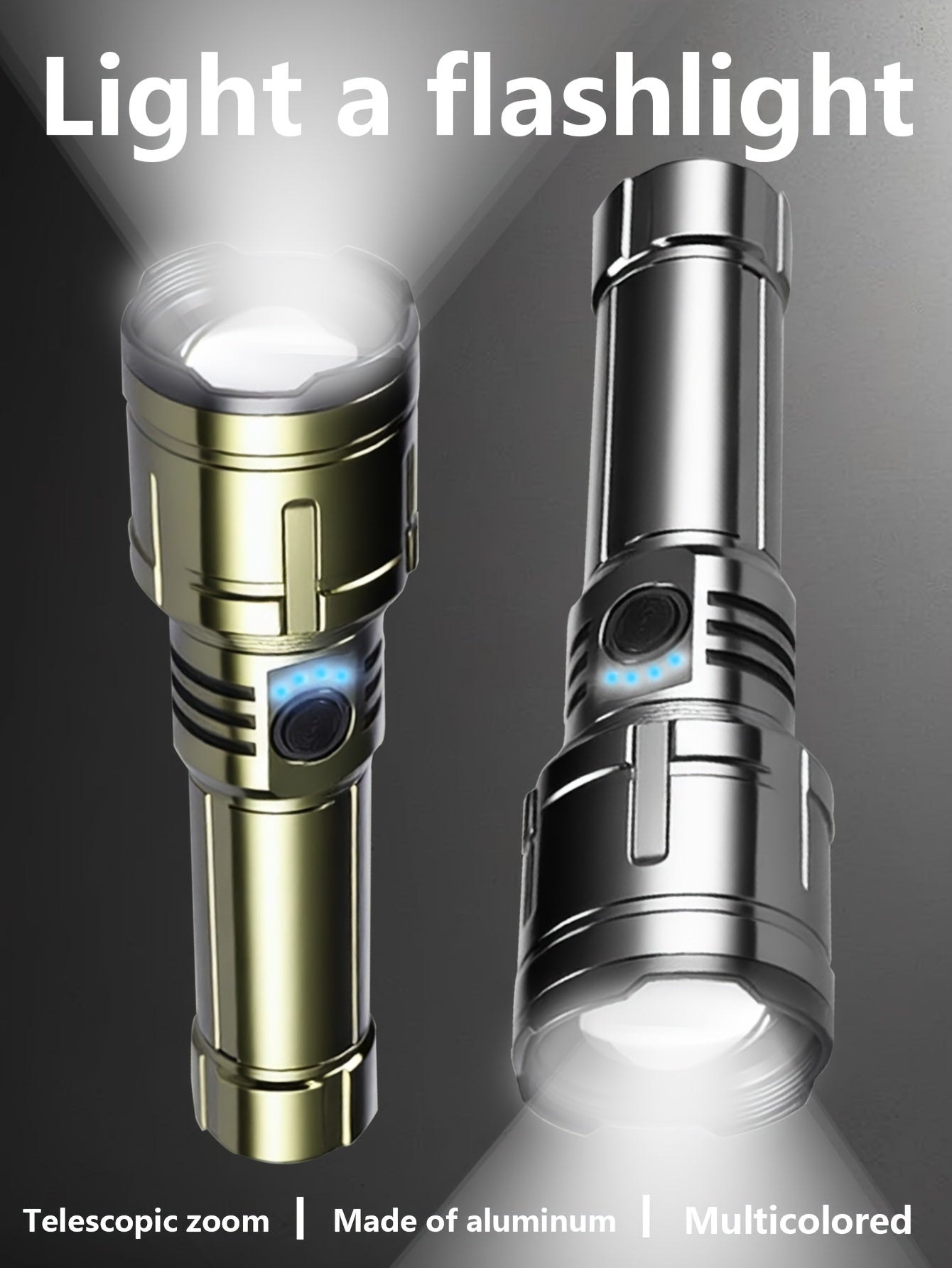 Outdoor Portable Flashlight with Ignition Function - Rechargeable Battery Power Bank Function, Long Battery Life - Aluminum Alloy Material, Suitable for Emergencies, Camping, Hiking | Bright And Durable Outdoor Life-saving Fl