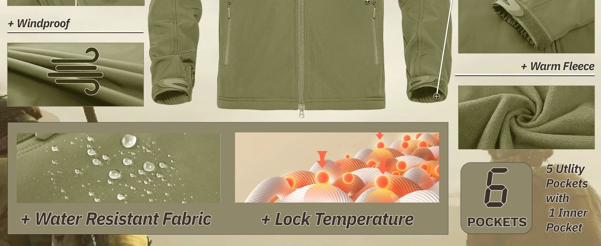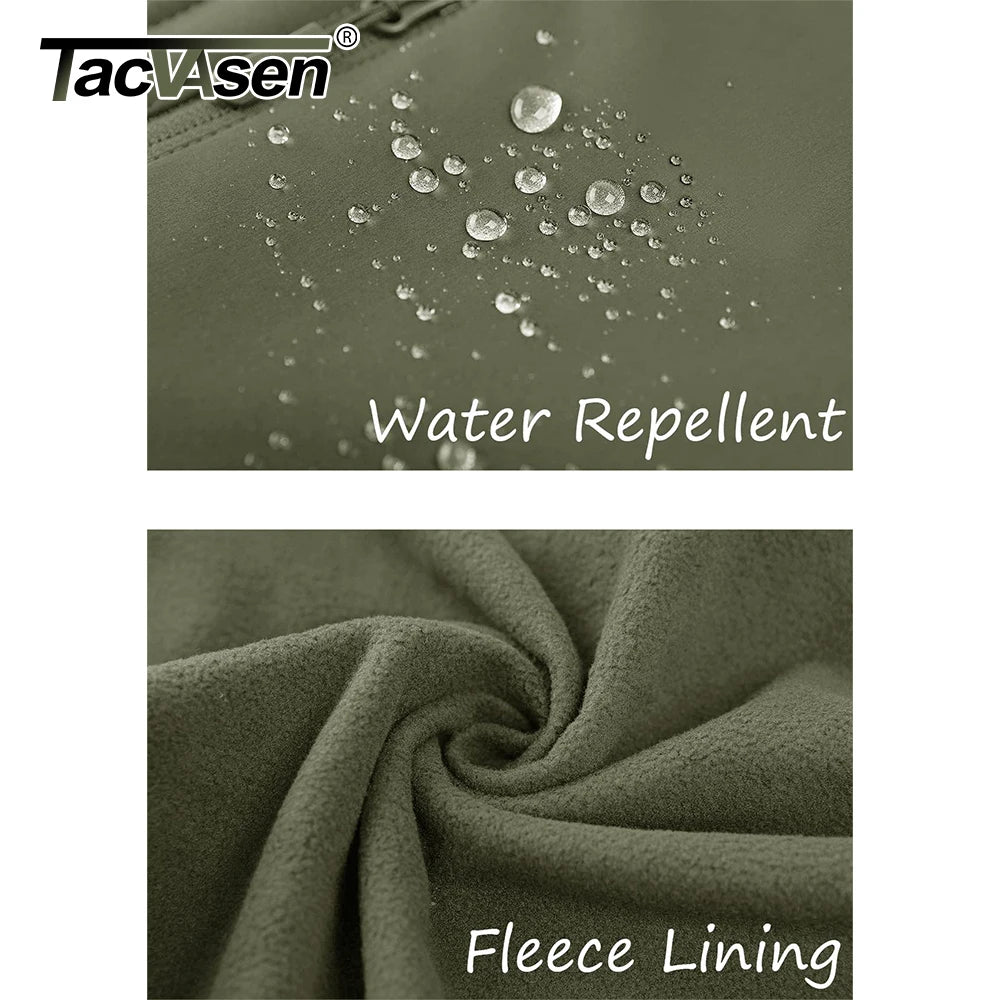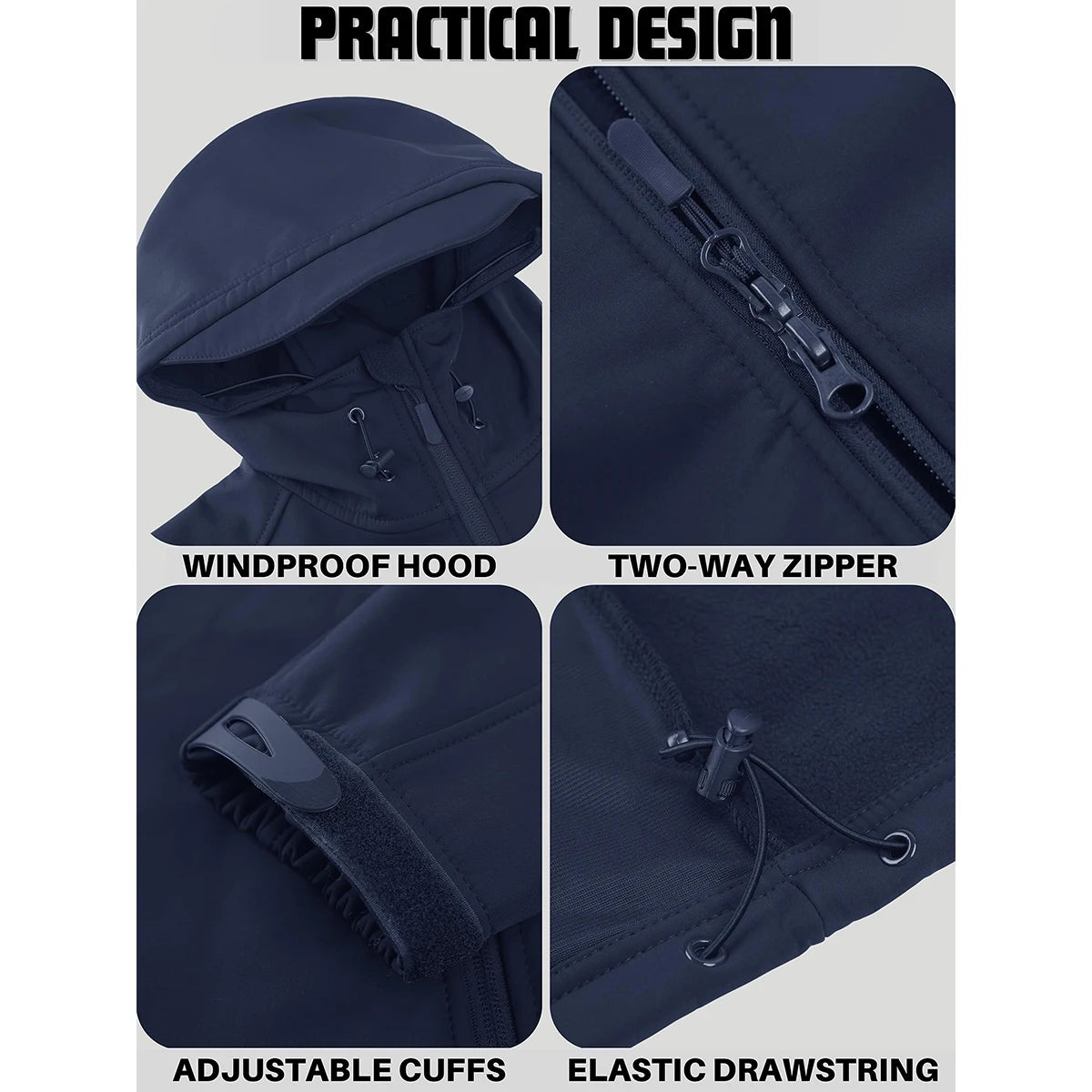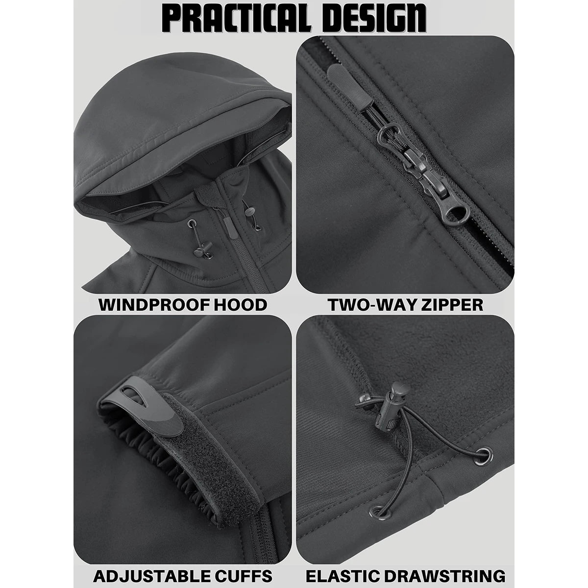 TACVASEN Men's Soft-shell Hooded Hiking Jackets Waterproof Fleece Lined Coat with Zipper Pockets Working Outdoor Windbreaker